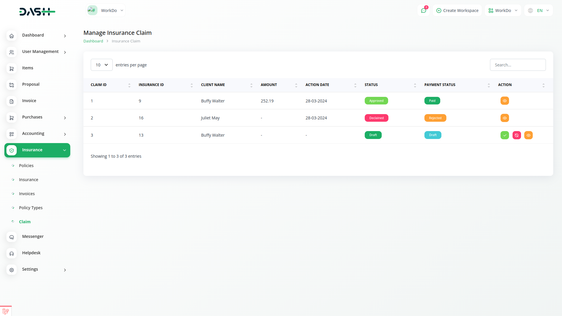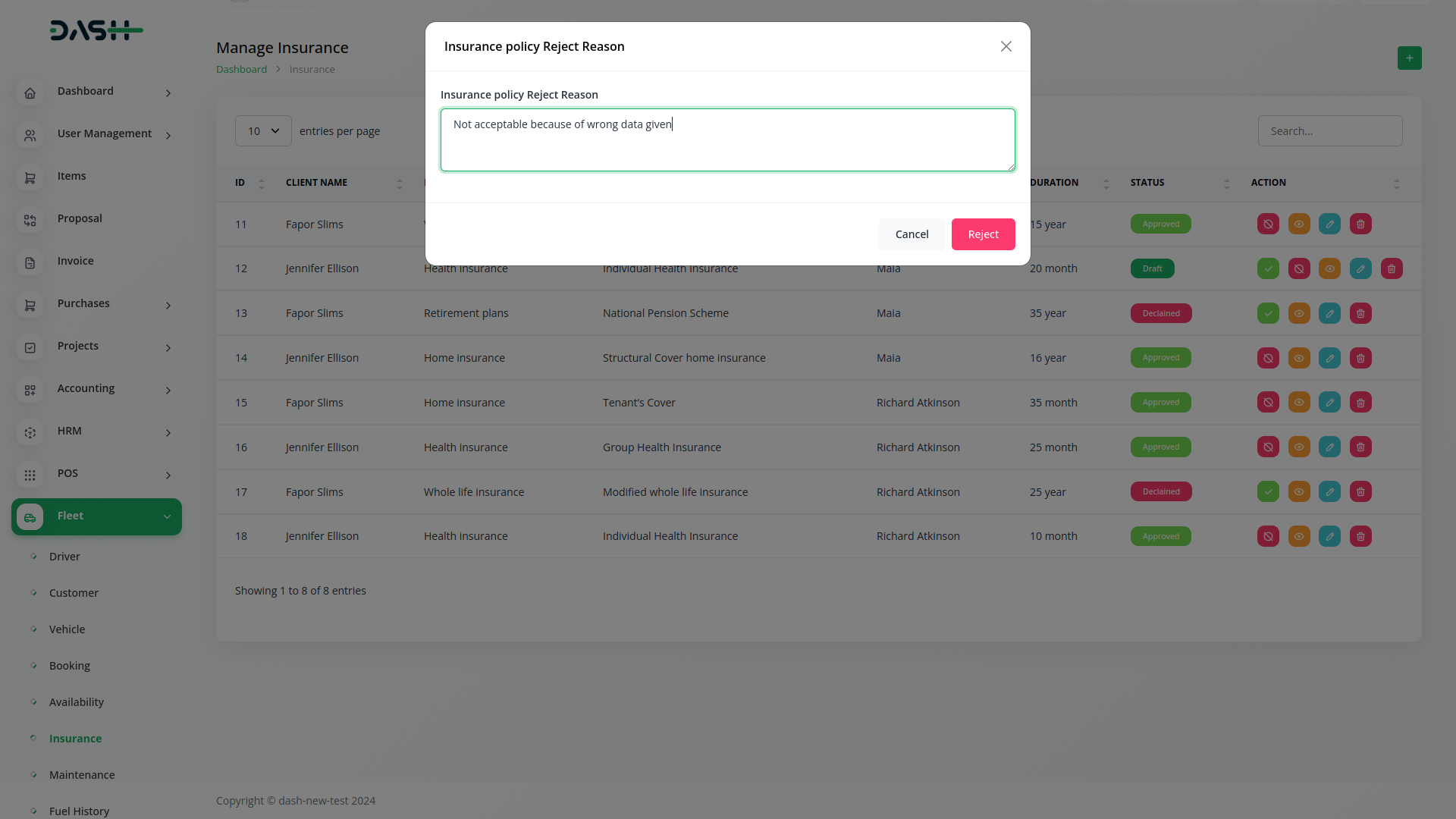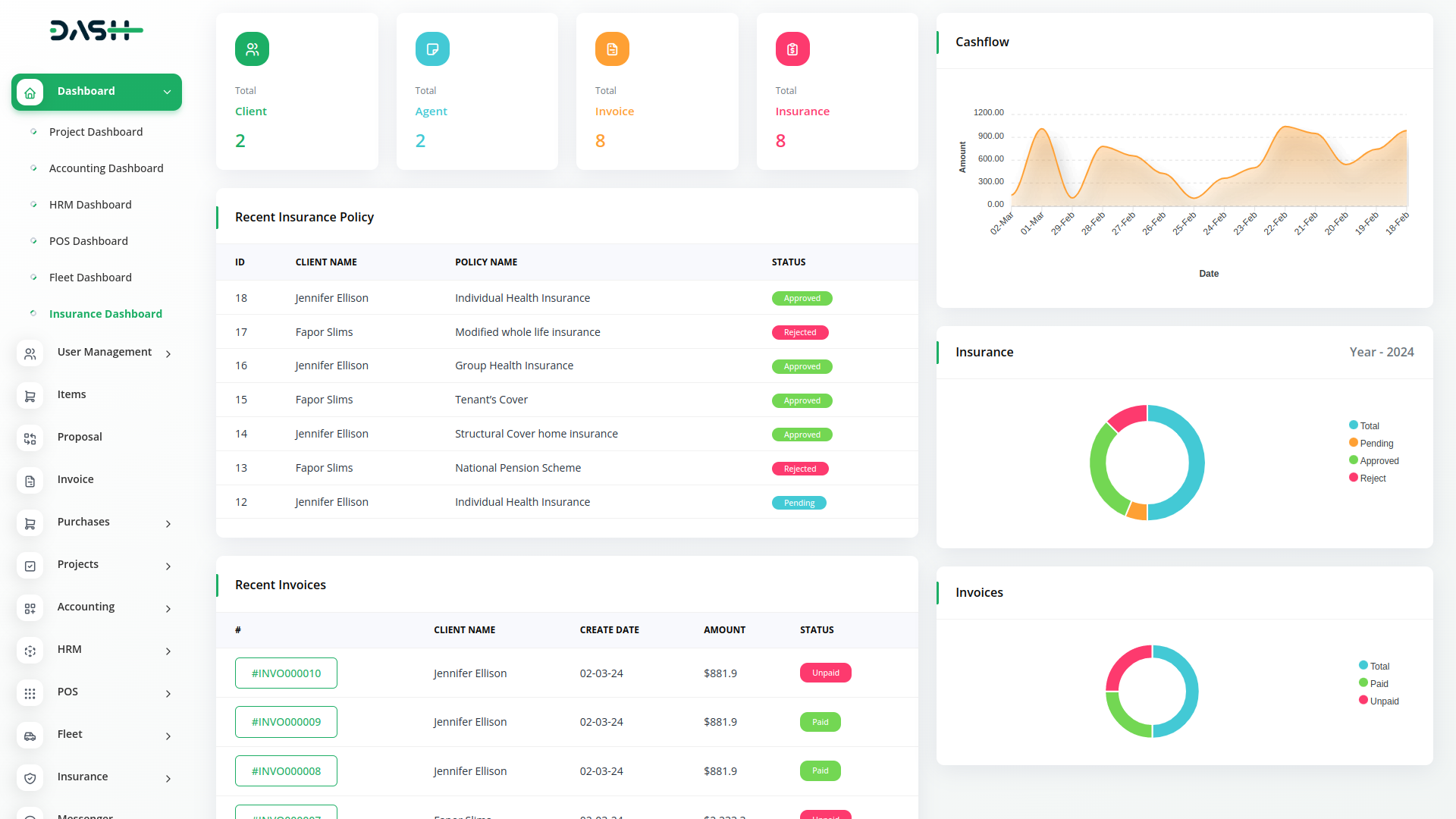 Efficiently manage insurance policies, claims, and client data with Dash SaaS Insurance Management Module.