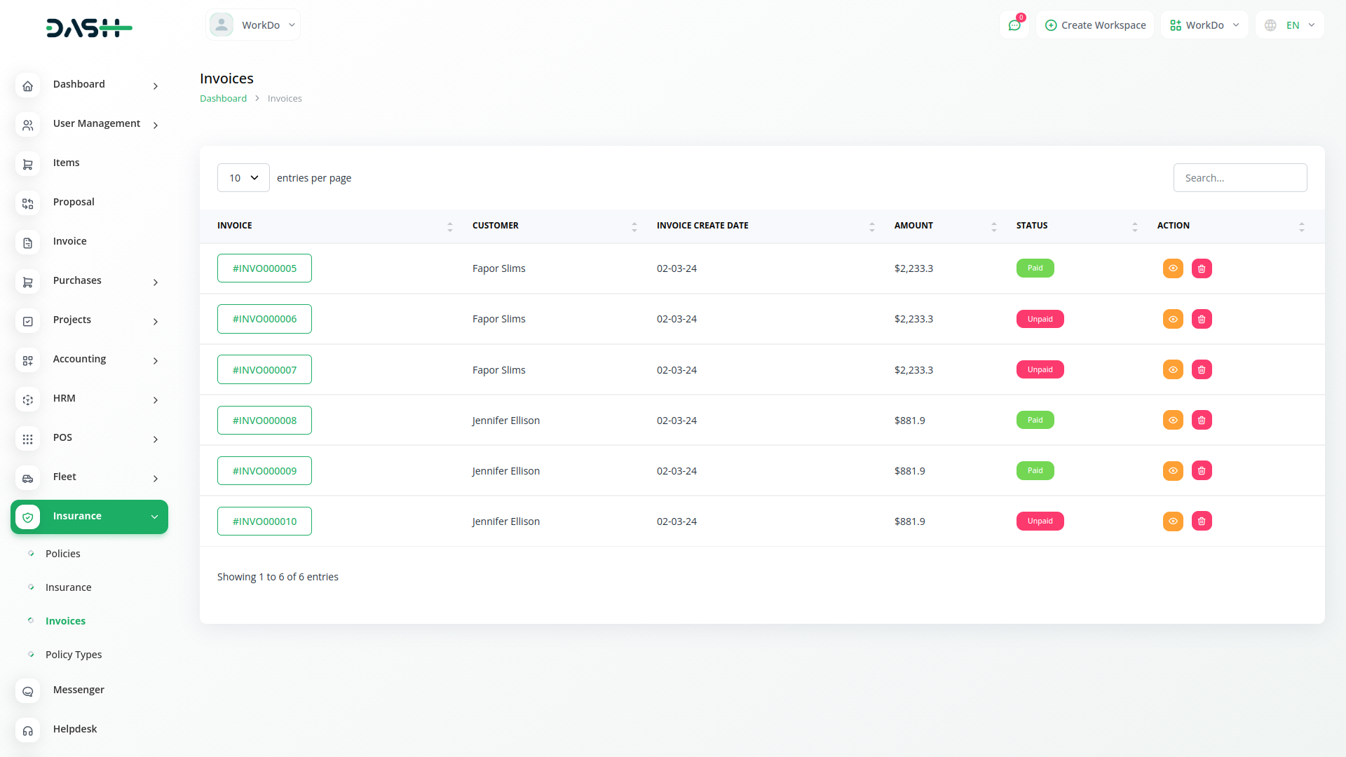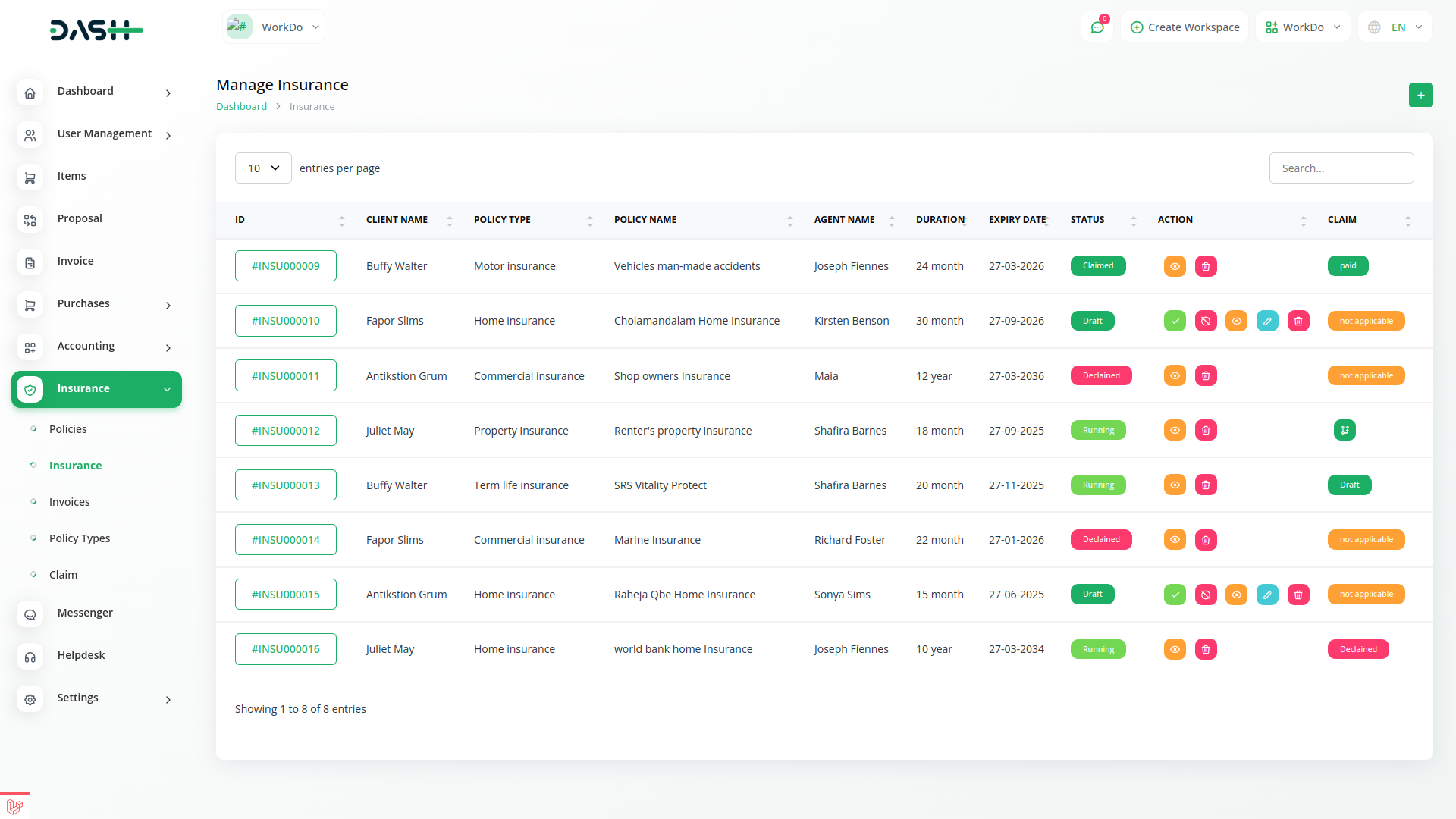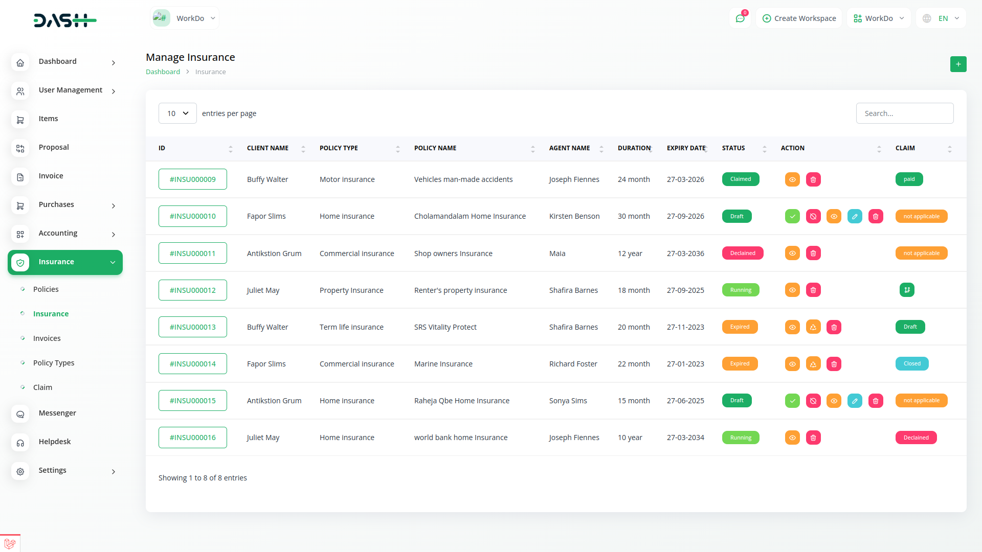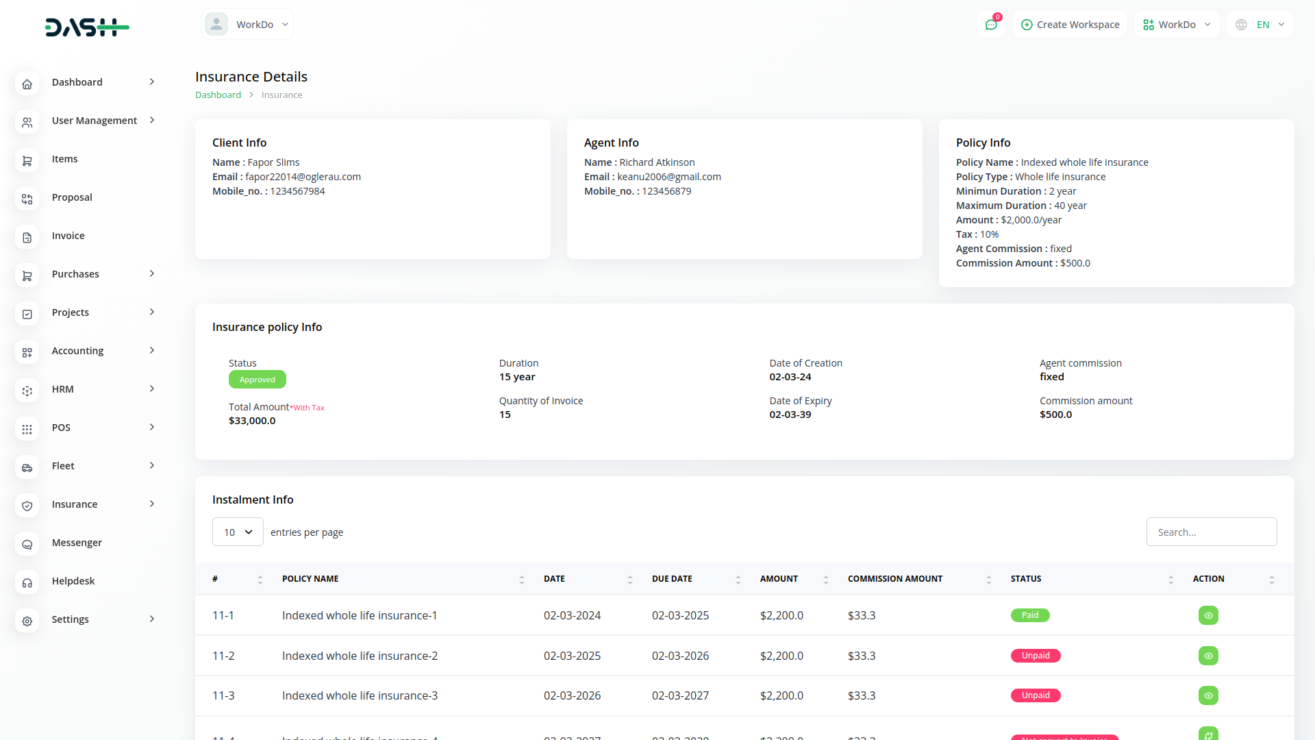 Streamline your insurance operations effortlessly with our comprehensive module in Dash SaaS. From client management to policy administration, access all your insurance-related tasks in one centralized dashboard, ensuring efficiency, accuracy, and compliance at every step.