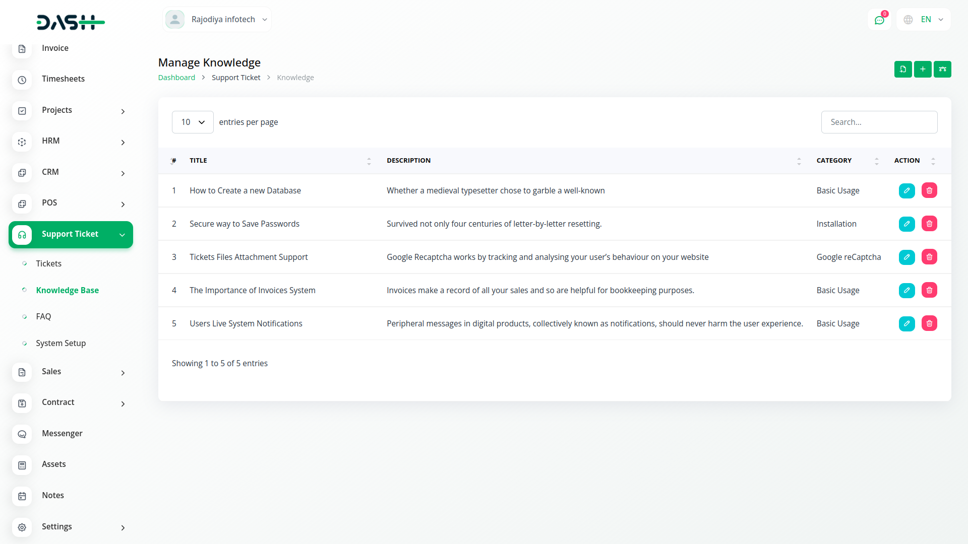 Add new tickets as and when required. Get a detailed list of all the generated tickets with their respective ticket IDs, categories, subject, status, and essential information. Edit them by adding a new response or changing the status with a simple click.